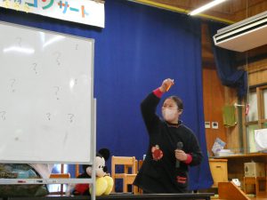 先生の出し物に大興奮の子どもたち😊子どもたちが大好きなキャラクターがでると大きな声で答えていましたよ😄