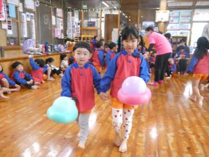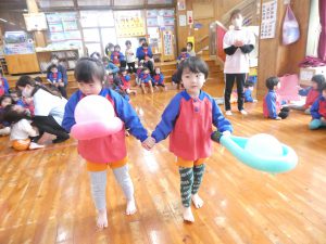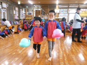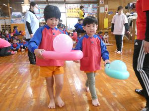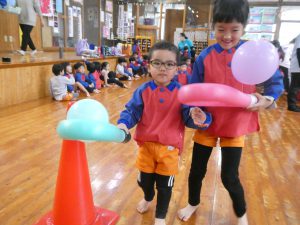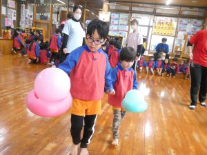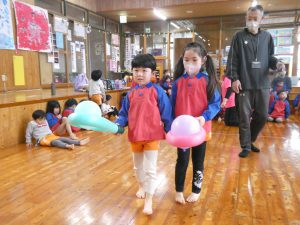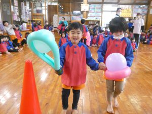 ですがホールで楽しいゲームをしたりきりん組さんとお話をしたり子どもたちは楽しそうでした!
