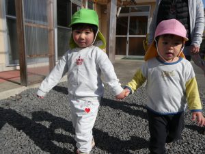 お兄ちゃん、お姉ちゃんと一緒に手を繋ぎ園庭まで歩いていきました。小さな手をしっかり握りしめて、楽しそうに歩く姿がとてもかわいらしかったです🥰