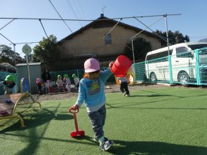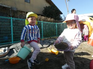 園庭遊びでは、ぽかぽかとした陽気の中で元気いっぱいに遊んでいました🌈