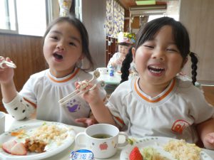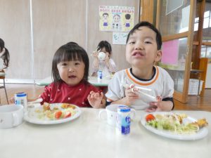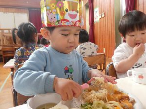 ブログ トップ ブログ 前へ »次へ »ブログ記事一覧 誕生会がありました(給食室)2026.04.15 今日は、4月の誕生者7名(1名欠席のため6名)を祝う誕生会がありました! 給食の献立は、たけのこご飯・とんかつ・いちご・あおさのすまし汁などでした😊 みんな大好きなトンカツを前に嬉しそうな様子でしたよ💕 前へ »次へ »ブログ記事一覧 最新の記事 4月の誕生会がありました(ひよこ組) 誕生会がありました(給食室) 散歩(こりす組) ひよこ組さん、よろしくお願いします。 カレンダー <2026年4月 日 月 火 水 木 金 土 1234 567891011 12131415161718 19202122232425 2627282930