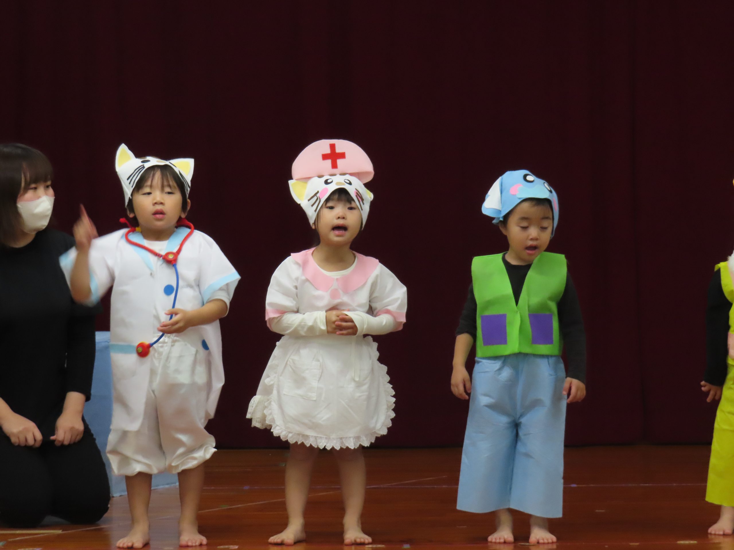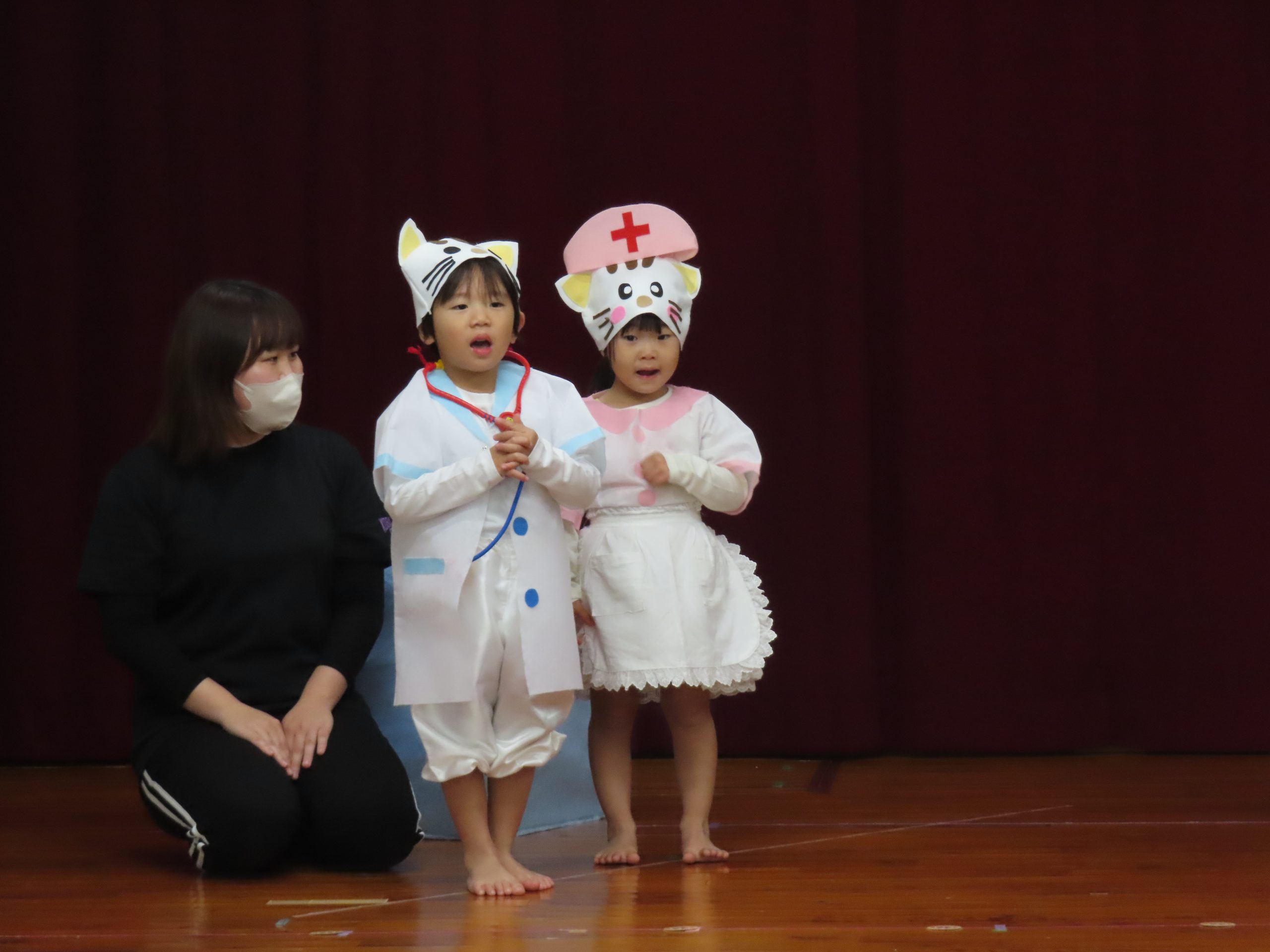 劇は『ねこのおいしゃさん』恥ずかしもあったようですが、なりきってしていましたよ。