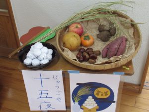 十五夜のお話の中で秋の野菜や果物、お米の話しもあり子どもたちも食べ物について関心を持っているようでした。