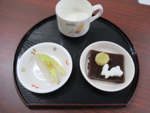 おやつは「月見ようかん・うさぎりんご・牛乳」です。